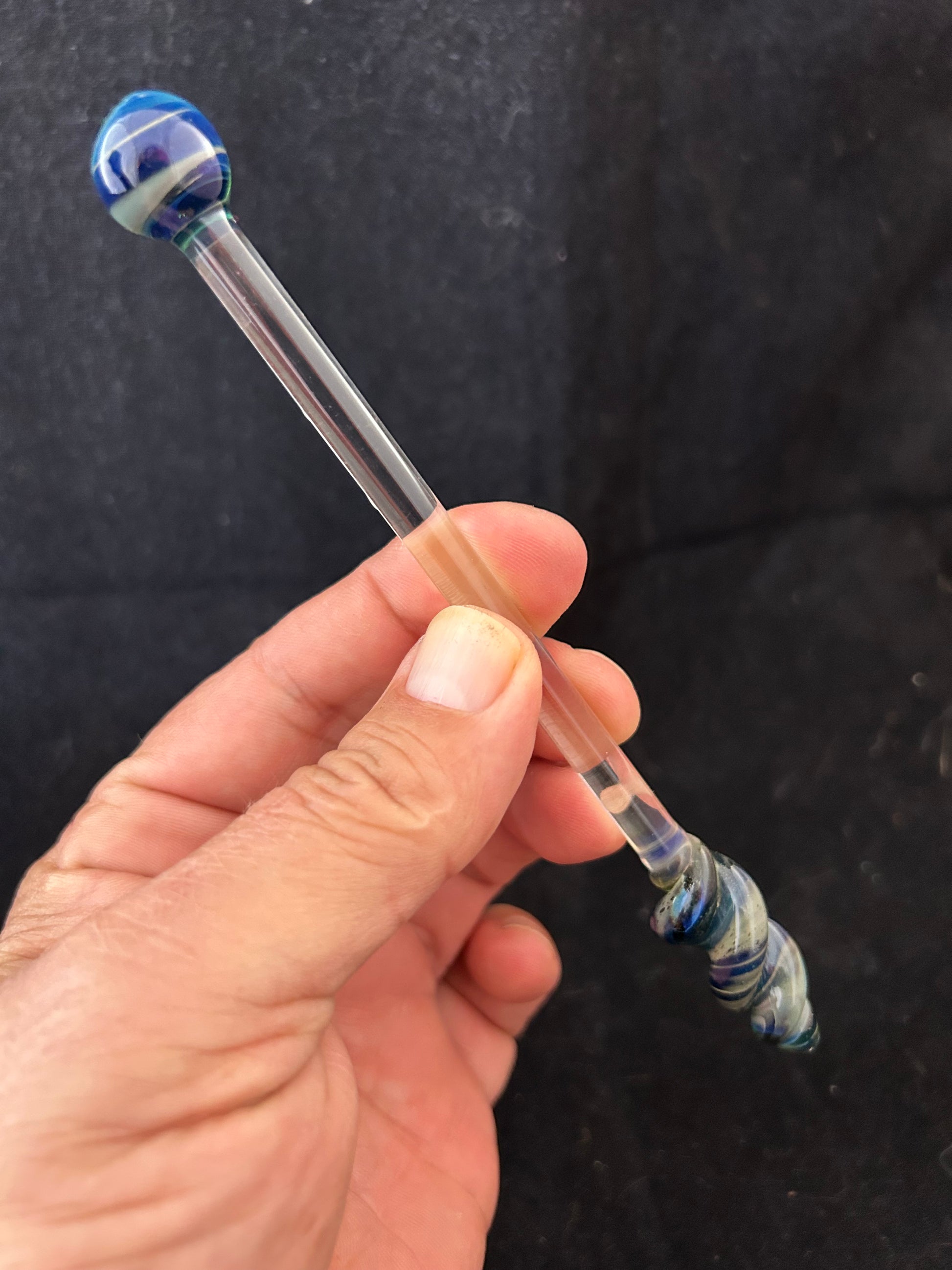 "Indulge in the luxury of the Alaska Thunder topped Honey Dipper, crafted from hand-sculpted borosilicate glass. Elevate your honey experience with this elegant and exclusive product, designed with care and refinement."