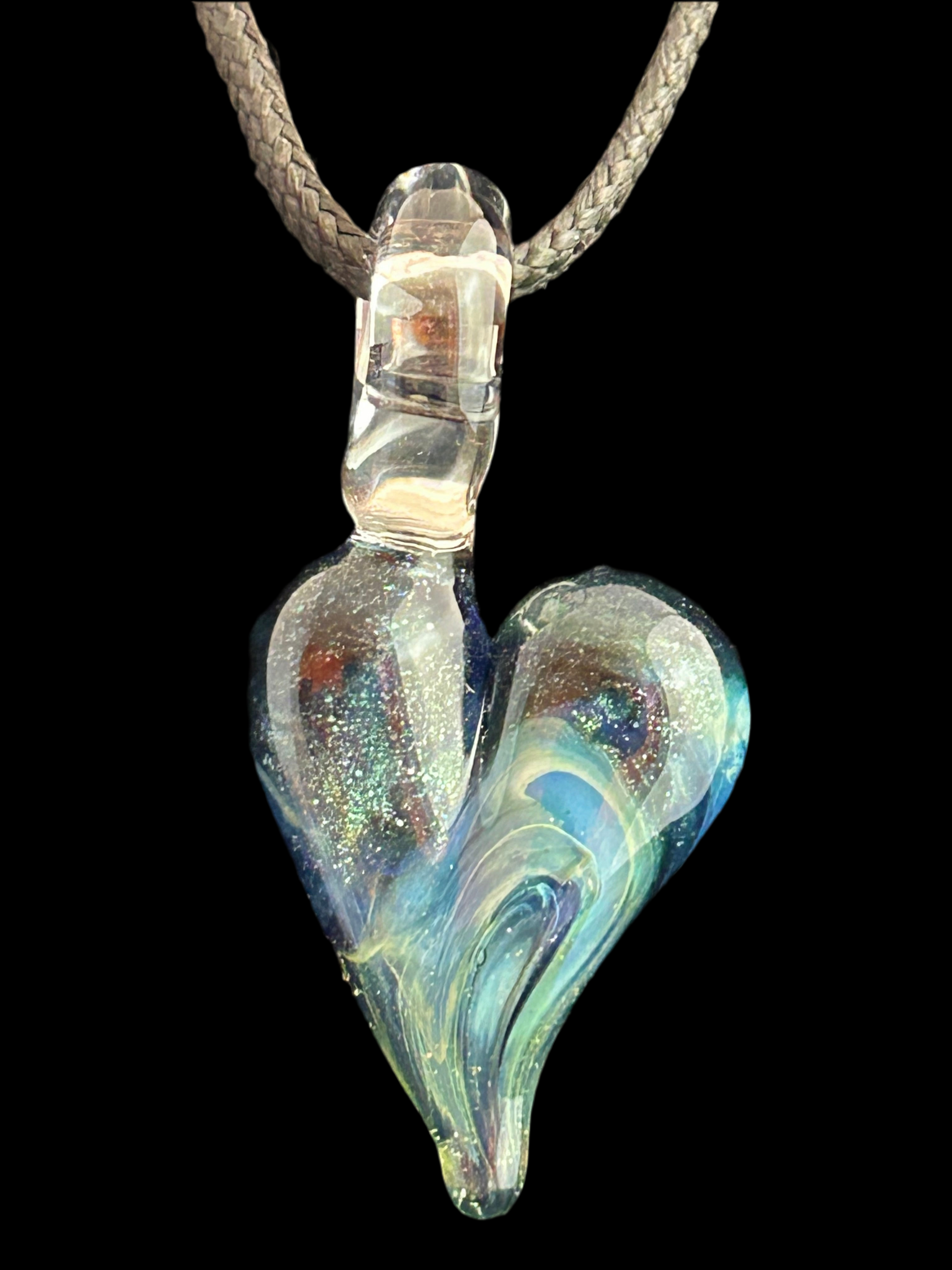 Embrace pure sophistication with our Blue & Green Heart Pendant. Hand sculpted from the finest borosilicate glass, this unique piece of art features stunning shades of blue and green, making it a true testament to craftsmanship. Elevate any outfit with this exclusive pendant, a must-have for any fashion enthusiast.