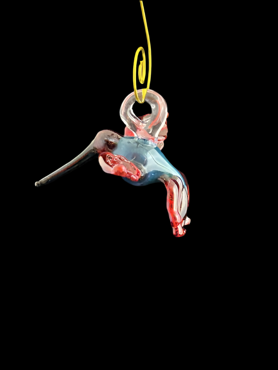 This exquisite Blue & Red Hummingbird is hand-crafted from high quality Borosilicate glass, measuring approximately 3 inches. Hang it in your garden or in the window to add a touch of beauty and whimsy to your space. Expertly sculpted, this piece captures the delicate and graceful nature of the beloved hummingbird.