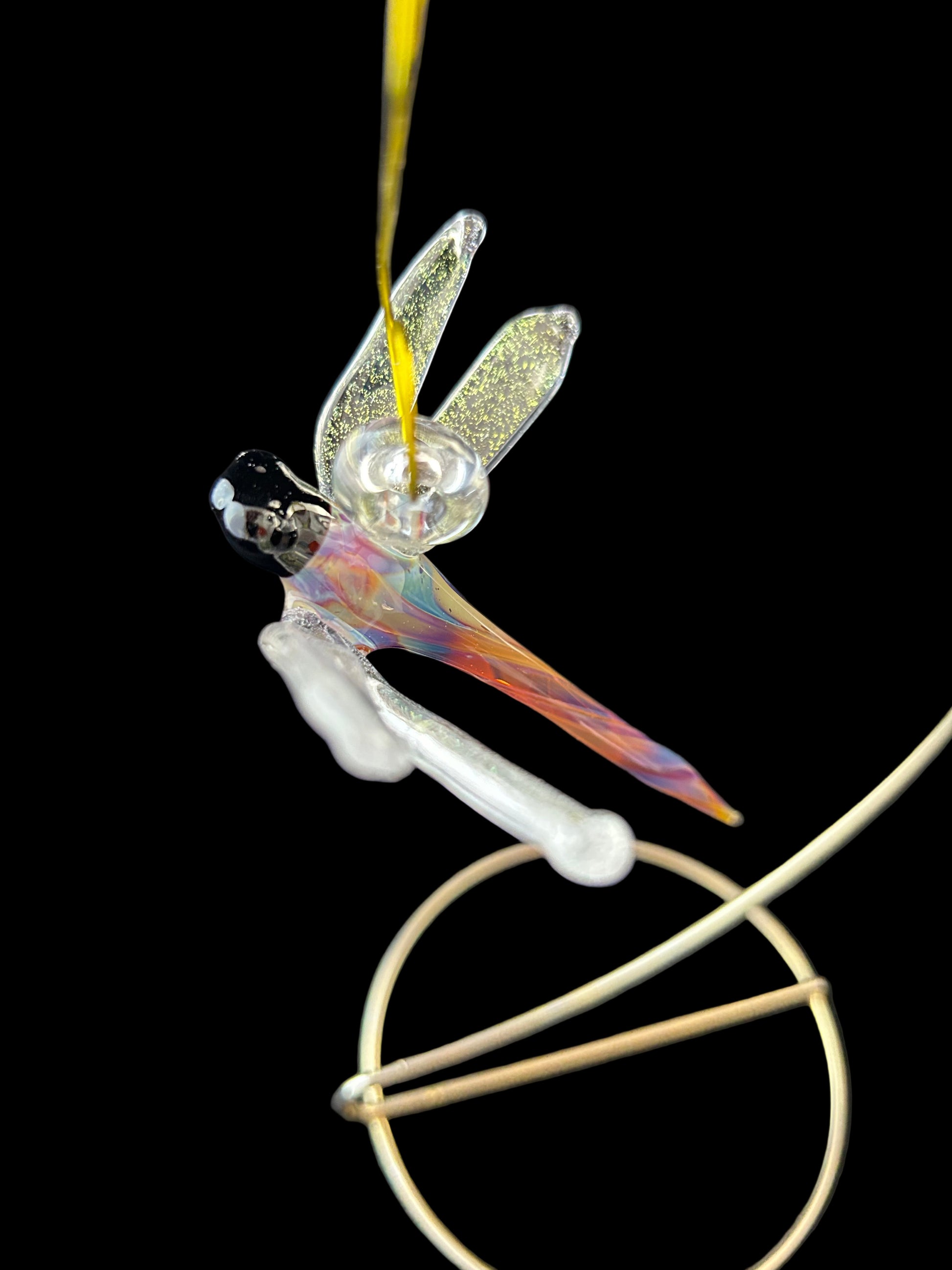 Experience the magical beauty of the Queen Bee Dragonfly with its hand-sculpted borosilicate glass body and stunning dichroic gold wings. Each piece is unique and crafted with care, making it a must-have for any collector or lover of intricate art. Add a touch of elegance and wonder to your home with this exquisite masterpiece.