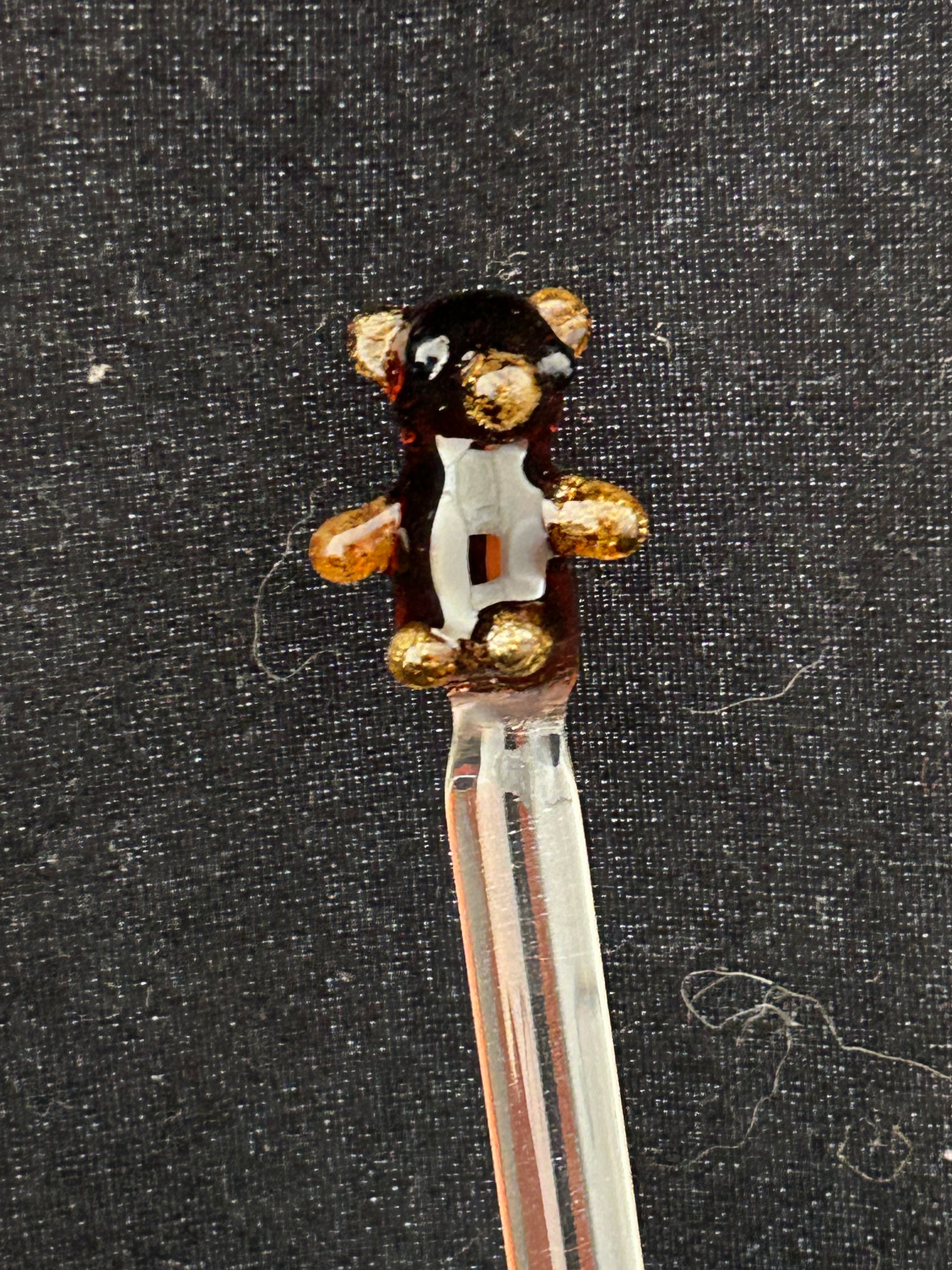 Scoop up your honey with this adorable Honey Dipper, featuring a small bear topper! Hand sculpted from borosilicate glass, this unique dipper will make your tea time a little more playful and sweet. Buzz-worthy addition to any kitchen!